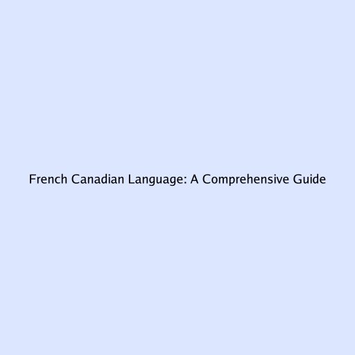 French Canadian Language: A Comprehensive Guide