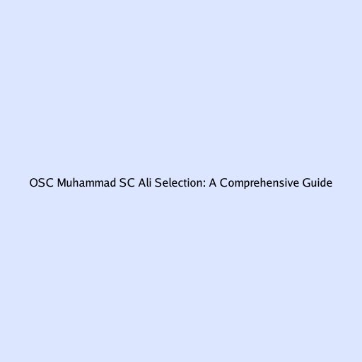 OSC Muhammad SC Ali Selection: A Comprehensive Guide